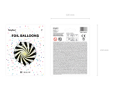 Glossy foil balloon Candy in white colour with black print, diameter before inflation approx. 45 cm (18''), diameter approx. 35 cm (14''). Inflate with helium and air.