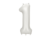 Satin foil Balloon Number 1 in silver, size before inflating approx. 100 cm (39''), size after inflating approx. 86 cm (34''). To be inflated with air or helium. The set includes a straw. The balloon is self-sealing. It has hooks for easy attachment to decorations.