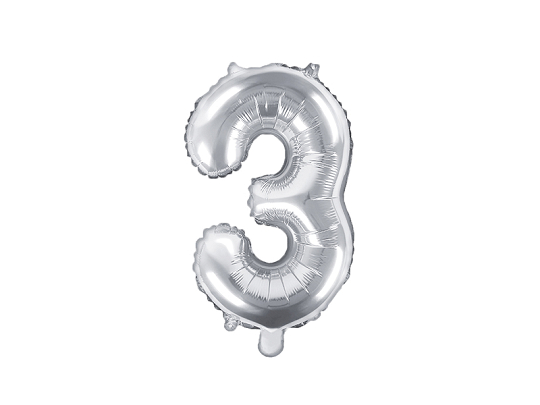 Metallic foil balloon Number ''3'', silver, size before inflation approx. 40 cm (16''), size after inflation approx. 35 cm (14''). Inflate with air.