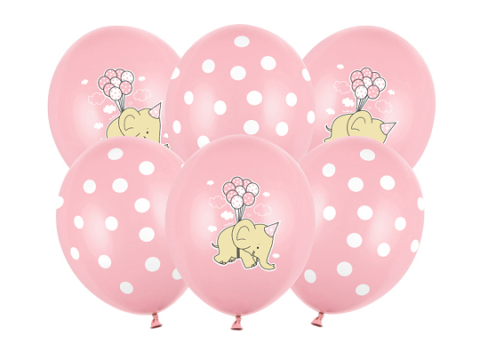 Strong Balloons, Elephant, Pastel Baby Pink Mix, the set contains balloons with double-sided print Elephant and white five-sided print Dots.