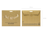 Sewn banner Just Married made of mirror rose gold paper, size: height approx. 20 cm, length approx. 77 cm.