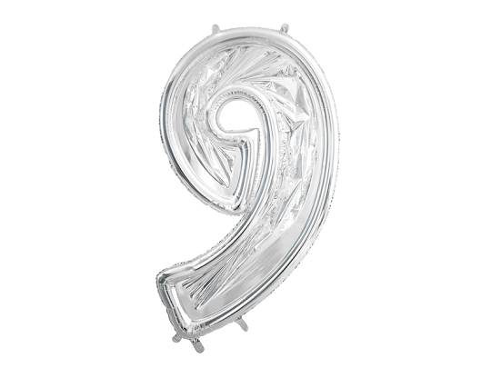 Number '9' frame, approx. 126 cm in size for latex balloons. A new trend in birthday and anniversary party decor. A DIY product for self-assembly and air filling. Frame in silver color.