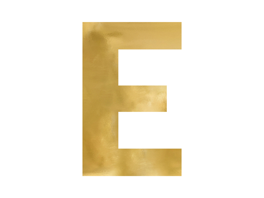 Mirror letter ''E'' made of High Impact Polystyrene in gold colour, size approx. 40x60 cm