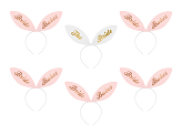Set of 6 headbands with bunnyears Bride Squad, 5 headband in pink colour with inscription "Bride Babes" and 1 in white colour with inscription "The Bride". Size approx. 29x25 cm.