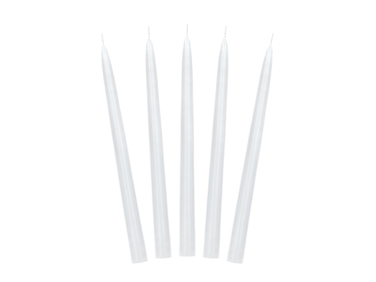 Taper candle, matt, white, height 24 centimeters. Burn time of 1 piece approx. 5 hours.