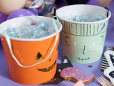 Set of treat buckets in two halloween designs, mix of colours, height approx. 13.5 cm.
