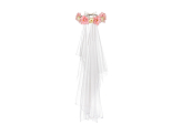 Flower crown in pink and cream colour with a veil in white colour, diameter approx. 17 cm.